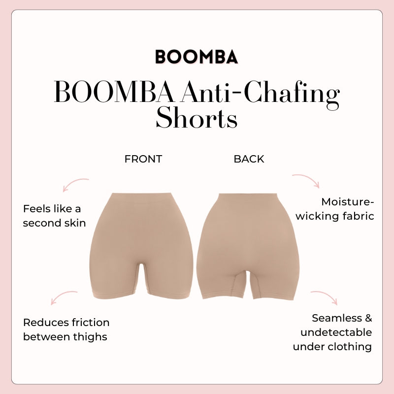 Thigh rub? Not today. BOOMBA’s Anti-Chafing Shorts are your go-to base layer for smooth, breathable comfort.