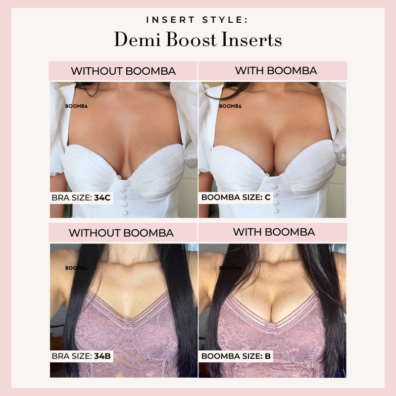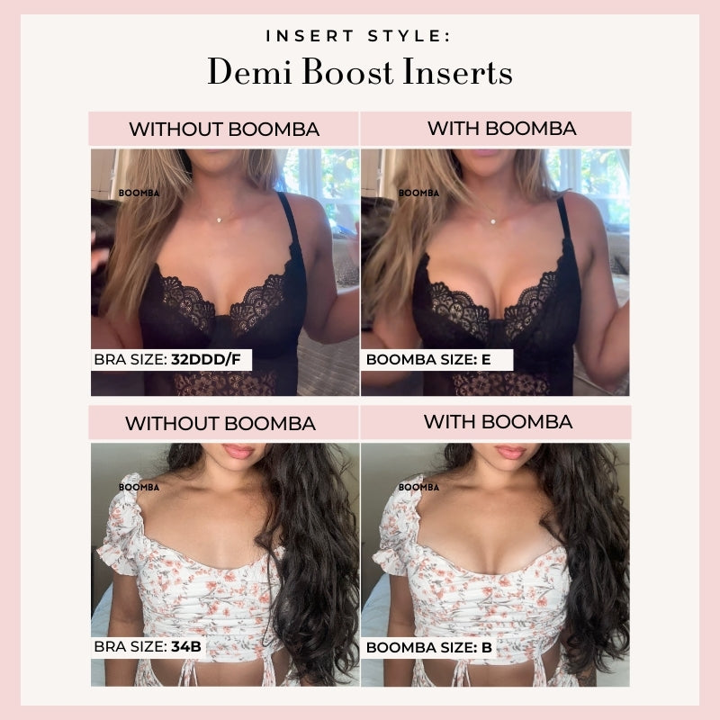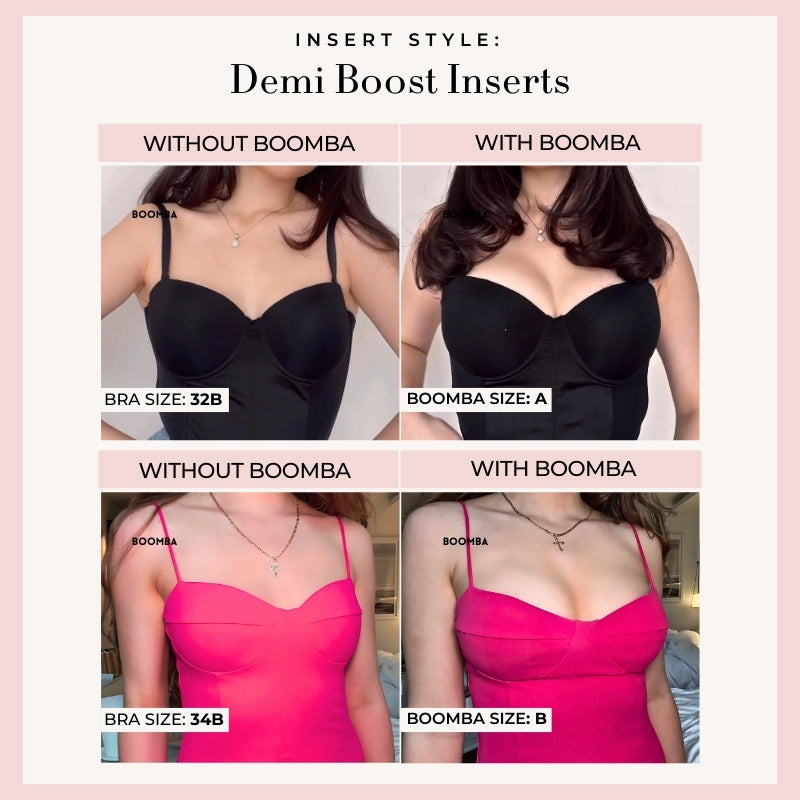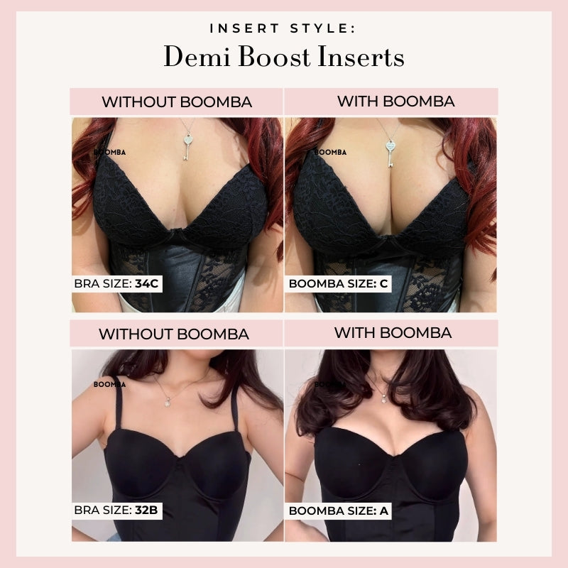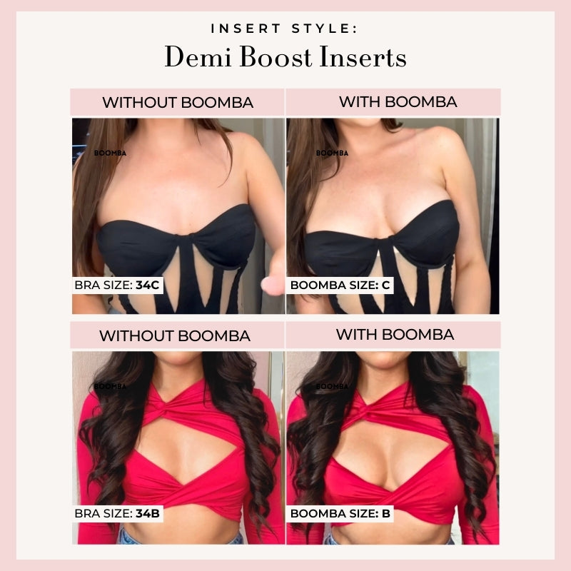 • Demi Boost: The shortened version of our Ultra Boost. Lifts and adds 2 cup sizes, perfect for sweetheart necklines.