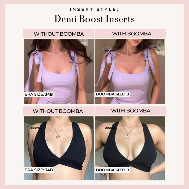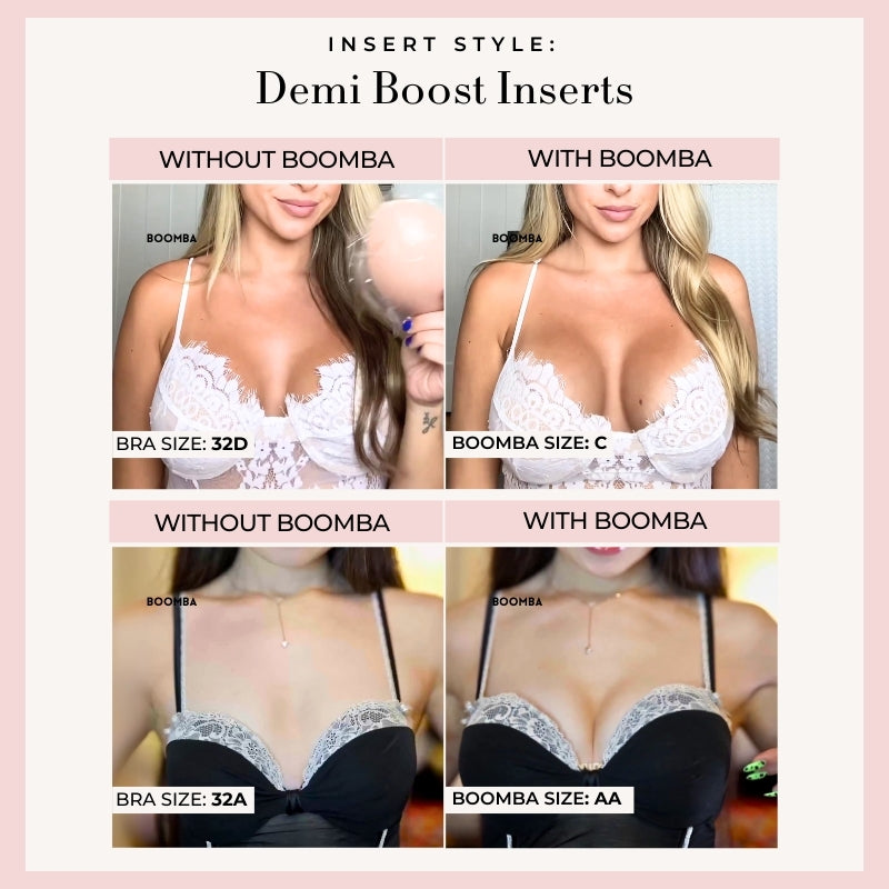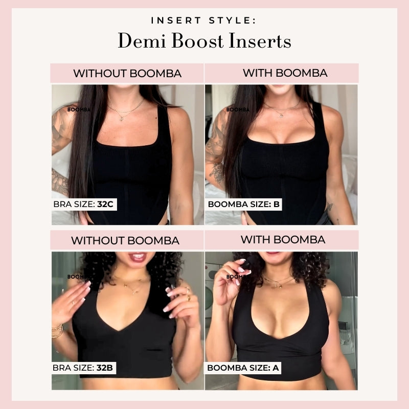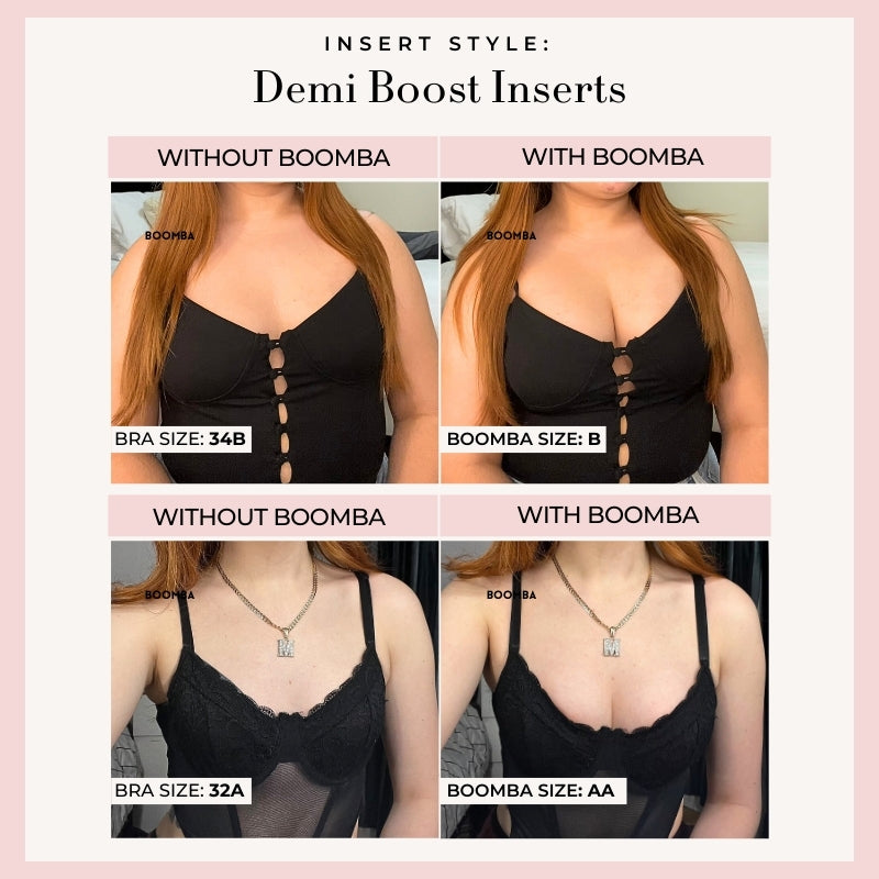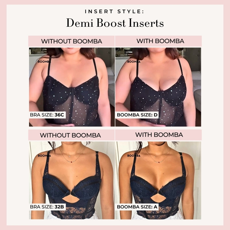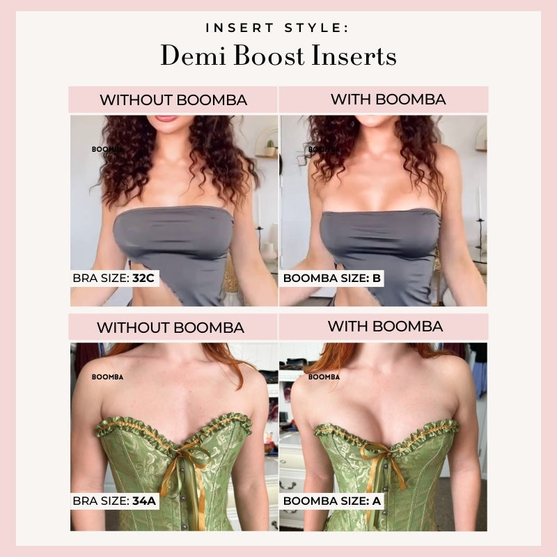 • Demi Boost: The shortened version of our Ultra Boost. Lifts and adds 2 cup sizes, perfect for sweetheart necklines.