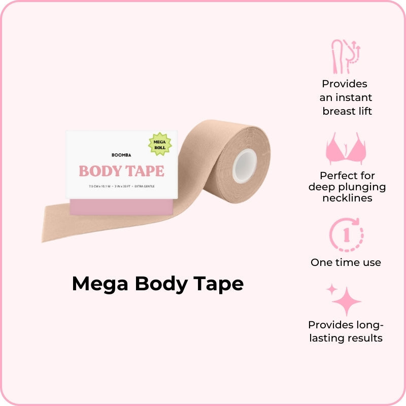I have tried a lot of body tapes and this one is my favourite for these reasons: 1) they are not as stretchy as other brands I have tried, so they actually hold up the shape better 2) because they are not as stretchy, they dont wrinkle as easily when applying, whereas some that are softer will instantly stick to itself and be ruined. 3) the adhesive isn't as strong as the others, which is a plus because you don't want to rip your skin off. Like its sticky enough to do the job, but not overly sticky where you have to wonder if it will hurt when you remove, which is super important because you don't want to end up ripping off your skin. 5) They have more than 1 shade!! Hello diversity and inclusivity! Although there are definitely more than 4 shades in this world, I definitely applaud this brand for creating multiple shades in their products, which is something I don't often see with other brands, so kudos to you Boomba! 6) excellent customer service! I dm'd on IG and they replied really fast and was really helpful. Shout out to Dennise for her help! For me I look for more than just a great product, I also look for companies that strive to be more inclusive and provide not just good products but also good service (not many do nowadays), and Boomba has ticked all those boxes!