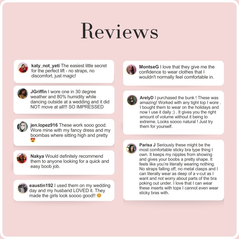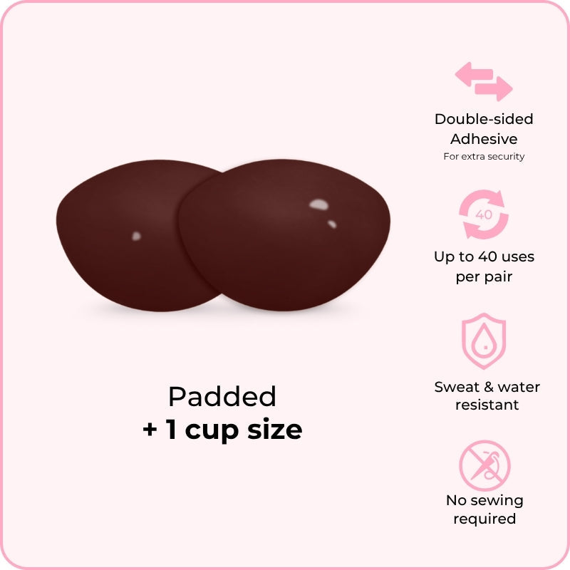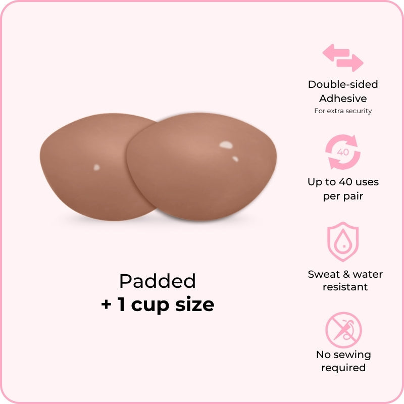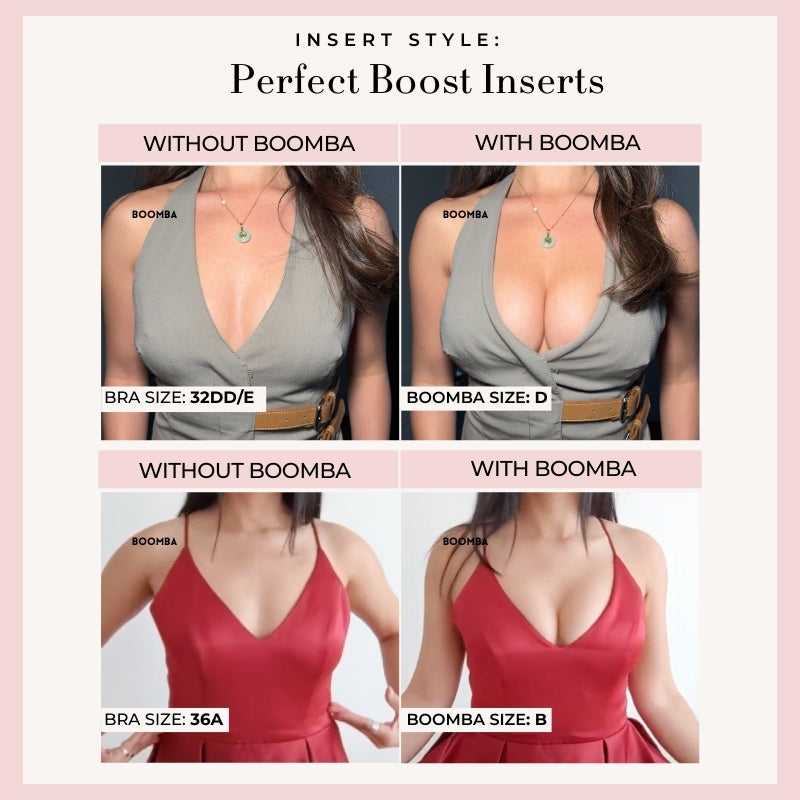 Perfect Boost Inserts are abalone-shaped inserts that increase your cup size by one cup. They give your bust a fuller look when you wear those plunging necklines and low-cut dresses.
