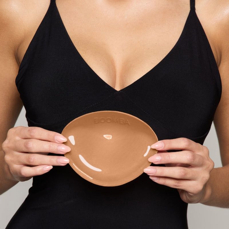 Unlike a sticky bra that is supported by adhesive, BOOMBA inserts are supported by the clothing and cannot stay up by themselves. It is crucial to wear them in tight, structured, and fitted tops.