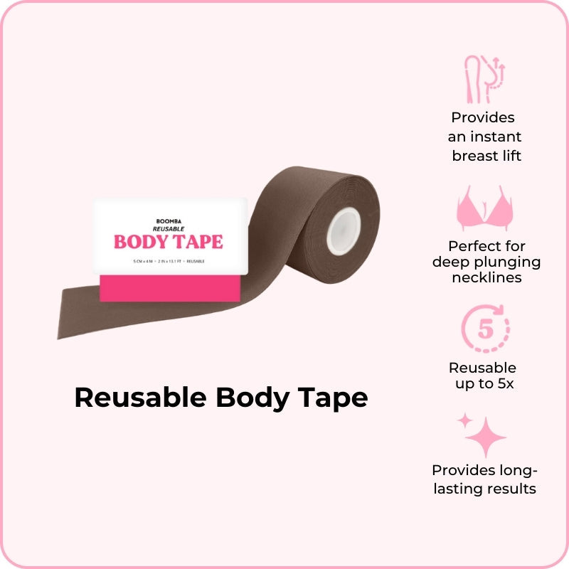 I have tried a lot of body tapes and this one is my favourite for these reasons: 1) they are not as stretchy as other brands I have tried, so they actually hold up the shape better 2) because they are not as stretchy, they dont wrinkle as easily when applying, whereas some that are softer will instantly stick to itself and be ruined. 3) the adhesive isn't as strong as the others, which is a plus because you don't want to rip your skin off. Like its sticky enough to do the job, but not overly sticky where you have to wonder if it will hurt when you remove, which is super important because you don't want to end up ripping off your skin. 5) They have more than 1 shade!! Hello diversity and inclusivity! Although there are definitely more than 4 shades in this world, I definitely applaud this brand for creating multiple shades in their products, which is something I don't often see with other brands, so kudos to you Boomba! 6) excellent customer service! I dm'd on IG and they replied really fast and was really helpful. Shout out to Dennise for her help! For me I look for more than just a great product, I also look for companies that strive to be more inclusive and provide not just good products but also good service (not many do nowadays), and Boomba has ticked all those boxes!